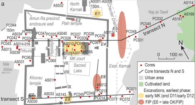 મંદિરના વિસ્તાર અને આસપાસથી લેવામાં આવેલા **૬૧ અવસાદ નમૂનાઓ (sediment cores)**ના વિશ્લેષણ દ્વારા ટીમે પુનઃરચના કરી કે નાઈલના પ્રવાહો સમય સાથે કેવી રીતે ખસ્યા, કાપેલા, માટી જમા કરી અને જમીનનું સ્વરૂપ બદલ્યું, એ ઘણું પહેલાં જ્યારે મંદિરના પથ્થરો ગોઠવાયા પણ ન હતા।